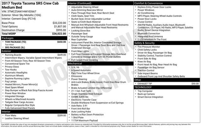 - Vehicle Name: Toyota Tacoma