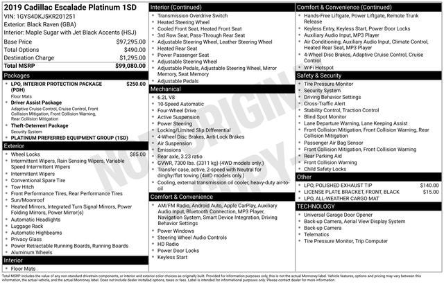- Platinum includes unique grille design, (SGG) 22" Dual 9-spoke alloy wheels with Chrome inserts/Ultra Silver metallic finish, Semi-Aniline leather seating surfaces (first and second row), leather (third row), leather wrapped IP, console and door, interior colors (HJU) Jet Black with Jet Black accents or (HSJ) Maple Sugar with Jet Black accents, Sumi Black Tamo Ash unique exotic wood, 18-way seats with driver massage, microfiber sueded headliner, premium floor mats, Platinum sill plates, (AYE) DVD dual screens located on backside of front row head restraints and (DCK) front console compartment with cooler