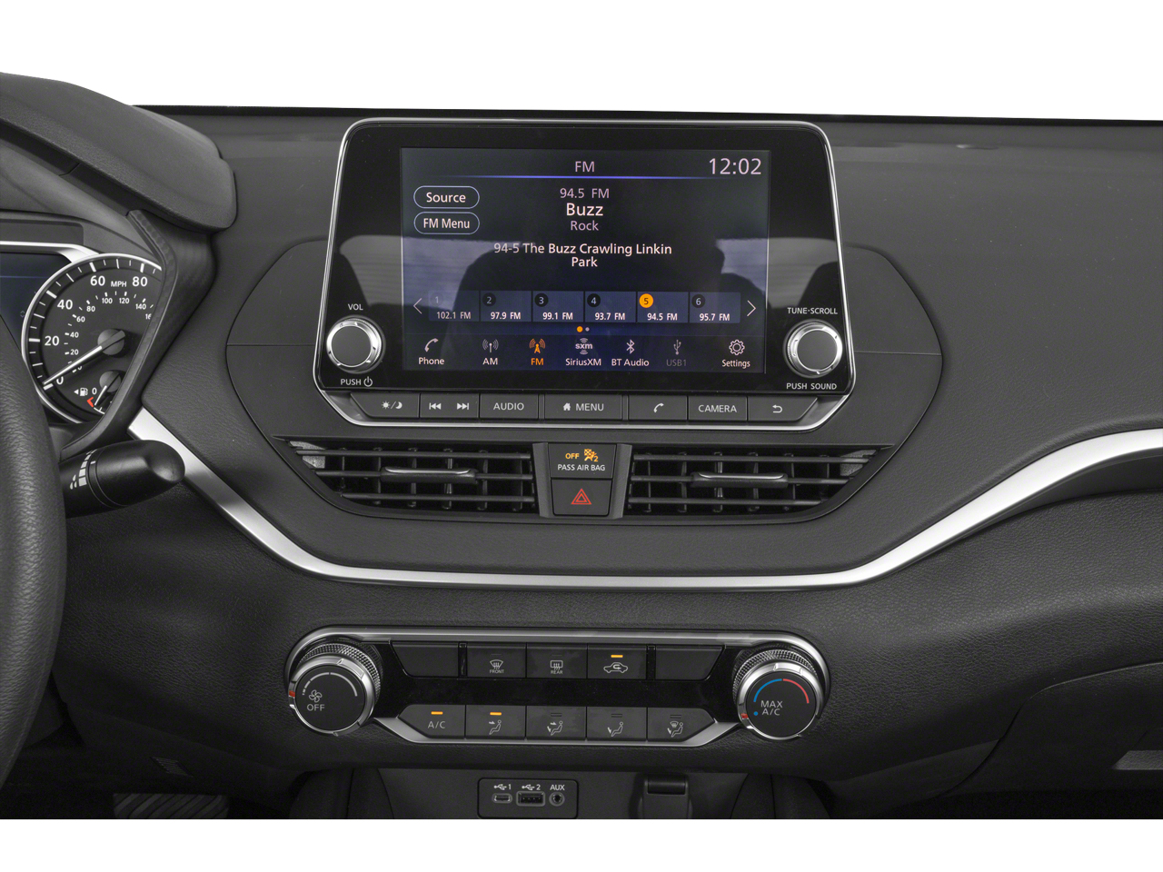- Radio: AM/FM w/Bose Premium Sound System -inc: 9 speakers, NissanConnect services powered by SiriusXM, Nissan door to door navigation, premium traffic and MapCare w/complimentary trial, SiriusXM Traffic, SiriusXM Travel Link, RDS, MP3, aux-in, NissanConnect featuring Apple CarPlay, Android Auto, 8" color touch-screen display, SiriusXM satellite radio w/advanced audio features, 1 front illuminated USB port (type-C) for compatible devices, SiriusXM radio w/advanced audio features, Bluetooth® hands-free phone system, streaming audio via Bluetooth®, hands-free text messaging assistant, 2 rear illuminated USB ports (type-A, 1 type-C) for compatible devices, Siri Eyes Free and Google Assistant voice recognition